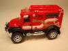 Red, black interior & chassis, clear windows, "Seven City Ambulance", ringed flower - white hubs, unpainted T base |