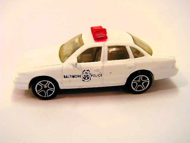 White, black C base, black & tan interior, clear windows, chrome disc w/ rubber, red & blue bar lights, “Dallas Police” (Premiere 22) |